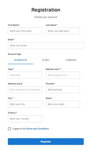 Business/Account Type (Workshop / Fleet / Company)