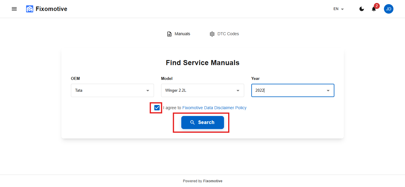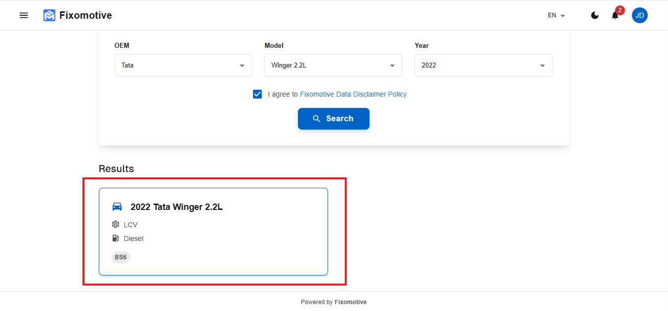 After clicking on the search button, select the model of the vehicle of your requirement from the results.